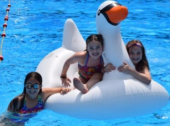 It is not unusual for campers to catch a glimpse, or even meet, some of our former or current team members, especially during our swim demo days. Surrounding the pool are ten acres of land with carved out areas for arts & crafts, yoga and nature. We have courts to shoot hoops and tennis courts to volley on. We have an outdoor game room and a playground for kids of all ages to go wild on! We have a baseball diamond and a special room for music and one for drama too! All this is just to name a few of the many programs we have here at Badger. And what would summer day camp be without a few trees to kick back under to enjoy some ice cream?